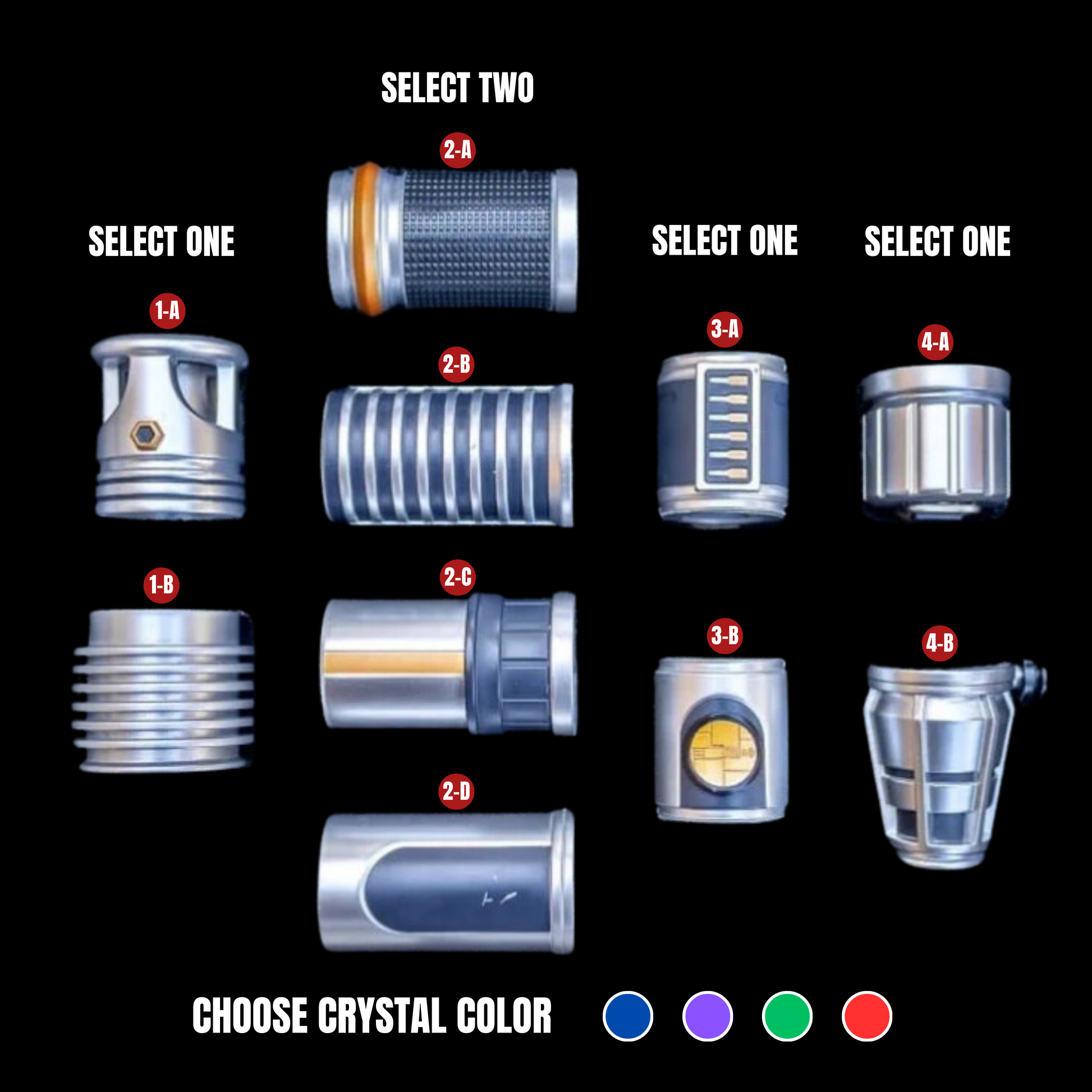 One of the most unique experiences from Galaxy's Edge! Create your very own lightsaber! Choose between the different parts listed below and send us an email with your order number, this way we can customize the saber to your liking.
